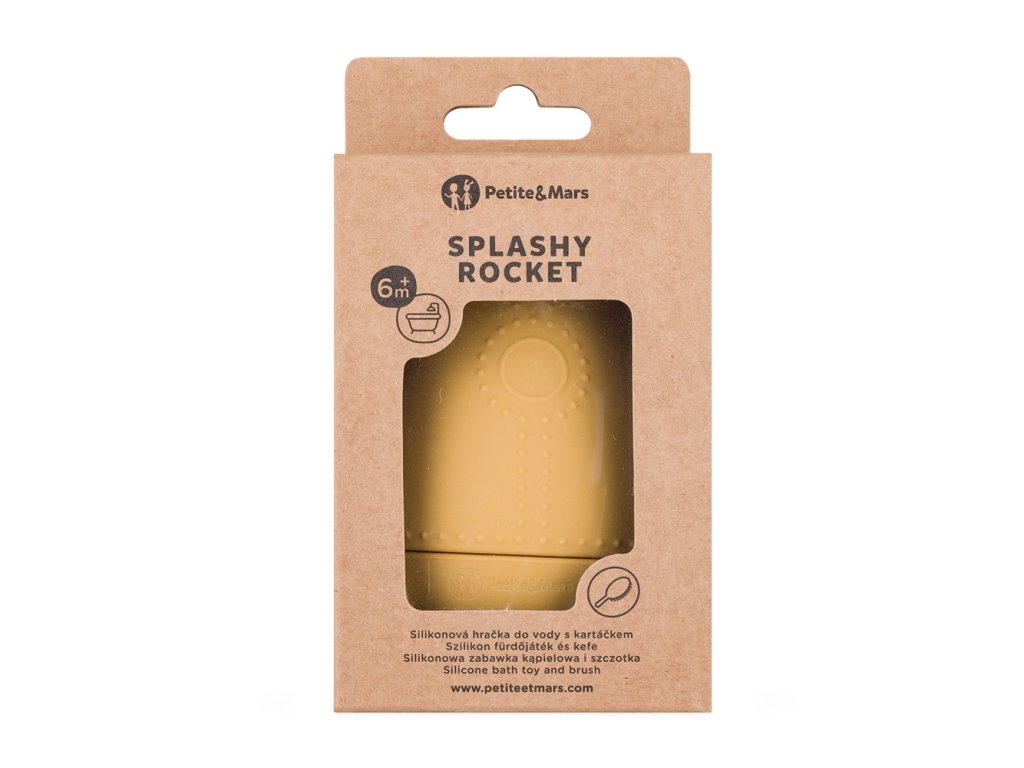 PETITE&MARS Hračka silikónová do vody s kefkou Splashy Rocket Intense Ochre 6m+