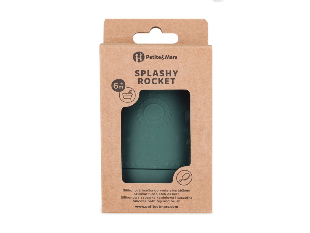 Nekonečná zábava vo vani! Splashy Rocket nie je len obyčajná hračka do vody – je to malá raketa pripravená vzlietnuť a preniesť vaše dieťa do sveta fantázie pri každom kúpaní! Jej spodná strana slúži aj ako jemná masážna kefka, vďaka čomu spája hru s príjemnou senzorickou stimuláciou. Či už ste doma vo vani, šantíte v bazéne alebo sa hráte pri jazere na dovolenke – Splashy Rocket je vždy pripravená na štart! Vďaka kompaktným rozmerom a nízkej hmotnosti je ideálna aj na cestovanie. Mäkké, ohybné silikónové telo a tvar vhodný na uchopenie umožňujú deťom stláčať, objavovať a hrať sa, čím sa podporuje jemná motorika a tvorivé myslenie. Po kúpaní hračku jednoducho odskrutkujete, opláchnete a necháte vyschnúť. Vyrobená zo 100 % bezpečného potravinárskeho silikónu bez BPA, Splashy Rocket je navrhnutá s ohľadom na bezpečie, pohodlie a radosť detí. Vlastnosti: - mäkká, ohybná a ľahká – ideálna pre malé detské rúčky - vyrobená zo 100 % bezpečného potravinárskeho silikónu bez BPA - ergonomický tvar vhodný pre bábätká a batoľatá - bezpečný tvar - podporuje senzorický a motorický vývoj - jednoducho sa rozoberá a čistí - materiál: Silikón - bez BPA - vek: 6m+ - rozmery: 11 × 7,5 × 7,5 cm UPOZORNENIE! Pre bezpečnosť a zdravie vášho dieťaťa odstráňte pred prvým použitím všetky obaly a upevňovacie prvky. Zabráňte kontaktu s ostrými predmetmi, ktoré by mohli poškodiť povrch výrobku. Výrobok používajte vždy pod dohľadom dospelej osoby. Pred každým použitím skontrolujte stav výrobku. Pri prvých známkach poškodenia alebo opotrebenia ho prestaňte používať. Informácie o produkte si uchovajte na neskoršie použitie. Dodávateľ: ags92 s.r.o., Drahobejlova 2515/18, 190 00 Praha, Česká republika, info@petiteetmars.comDodatočné parametre