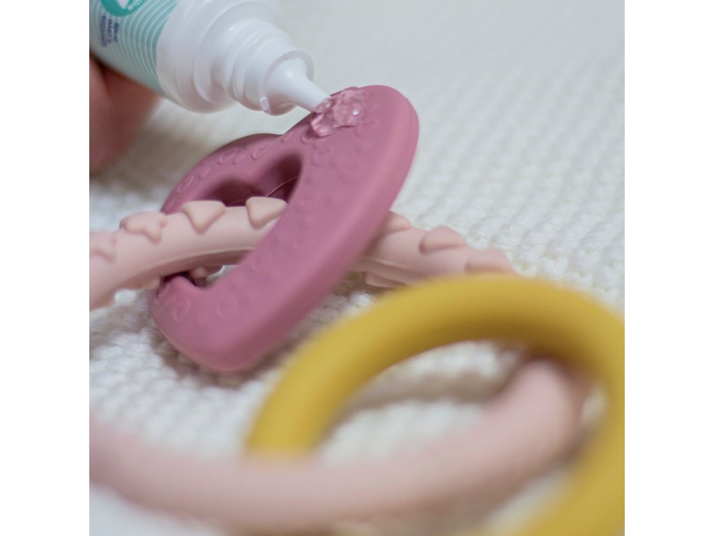 Silikónové hryzátko ELEFI Mäkké silikónové hryzátko pozostávajúce z krúžku s 3 zaujímavými prvkami je vyrobené výhradne z potravinárskeho silikónu bez obsahu BPA. Najkvalitnejšie odolné materiály zaručujú bezpečnosť vášho dieťatka počas hry a prerezávania zúbkov. Pružný silikón je dokonale vhodný pre citlivé detské ďasienka. Pomáha zmierniť bolesť, ktorá vzniká pri prerezávaní zúbkov, pretože pri hryzení hryzátka sa jemne masírujú ďasná. Hryzátko možno schladiť v chladničke a dať dieťatku studené. Rôzne povrchy hryzátka stimulujú správny vývoj čeľuste. Primeraná veľkosť hryzátka umožňuje dieťatku ľahké uchopenie a vynikajúcu, bezpečnú hru, ktorá stimuluje jeho vývoj. Vlastnosti: - mäkké, ľahké a pružné - vyrobené zo 100 % bezpečného potravinárskeho silikónu bez obsahu BPA - má upokojujúci účinok na ďasná dieťatka počas prerezávania zúbkov - ergonomický dizajn, tvarovaný s ohľadom na najmenších: malé rozmery uľahčujú uchopenie a hranie - rôznorodý povrch na stimuláciu dobrého vývoja čeľuste - bezpečný tvar, zabraňujúci uduseniu - rozvíja motorické schopnosti dieťaťa - možno chladiť v chladničke (nie v mrazničke) - ľahko sa udržiava v čistote, možno ho umývať v umývačke riadu - rozmery: hryzátko v tvare slona 7 x 6 cm, veľký okraj 8,5 cm, malý okraj 6 cm - hmotnosť: 55 g Adresa dodávateľa: ags 92, s.r.o., Drahobejlova 2515/18, 190 00 Praha, Česká republika info@petiteetmars.com UPOZORNENIE! Pre bezpečnosť a zdravie vášho dieťaťa pred prvým použitím odstráňte všetky časti obalu a upevňovacie prvky. Výrobok používajte vždy pod dohľadom dospelej osoby. Pred každým použitím výrobok skontrolujte. Pri prvých známkach poškodenia alebo slabosti materiálu ho vyhoďte. Uložte si informácie o produkte pre neskoršie použitie.Dodatočné parametre