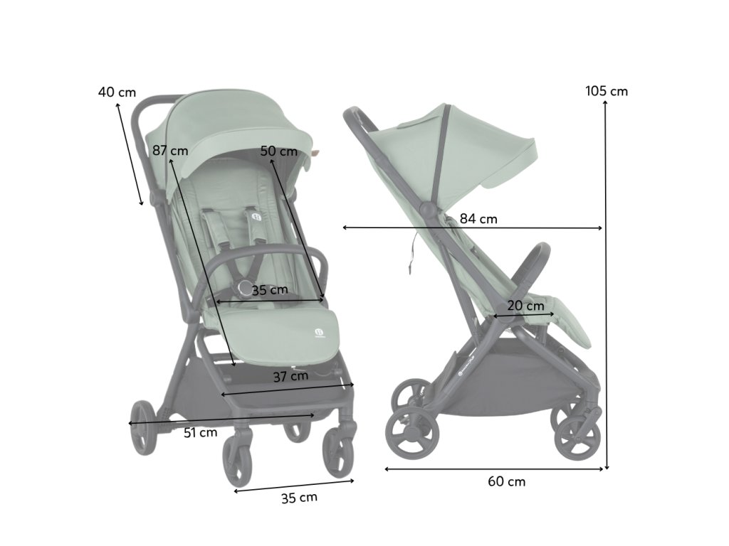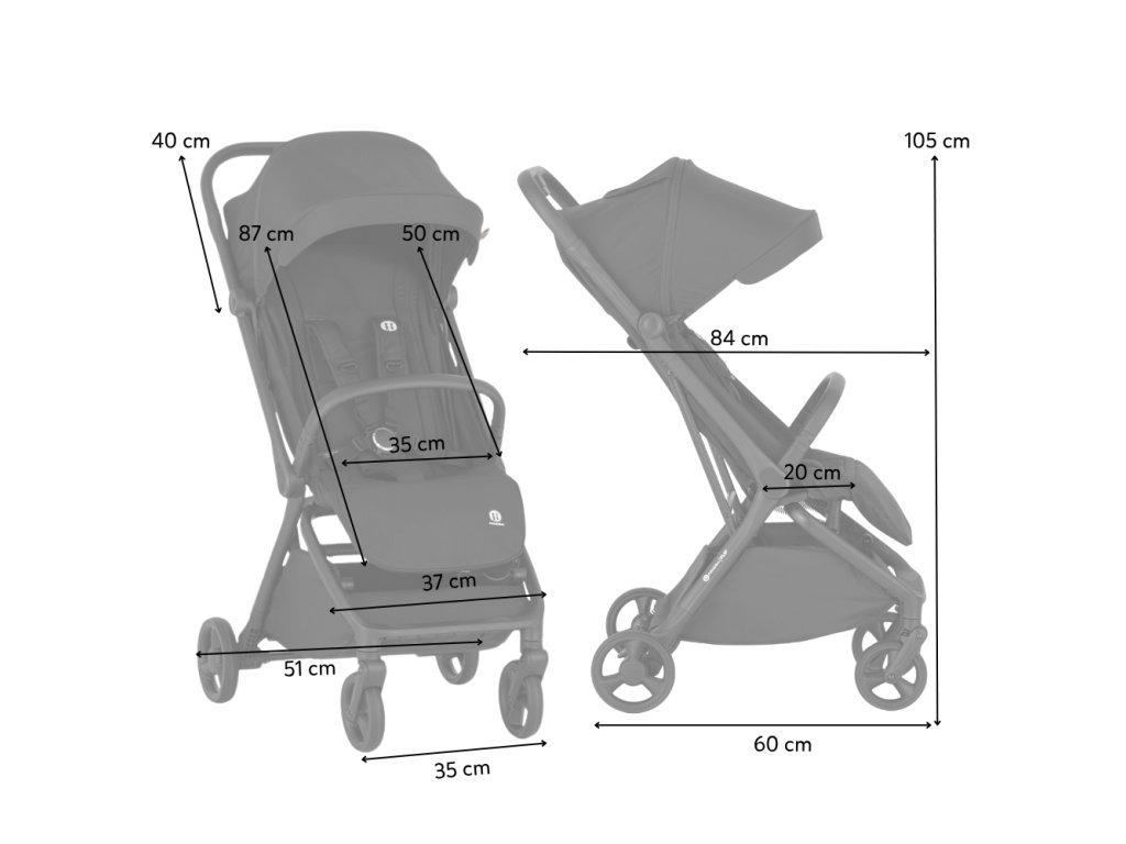 Rozmery rozloženého kočíka: 37 × 85 × 105 cm