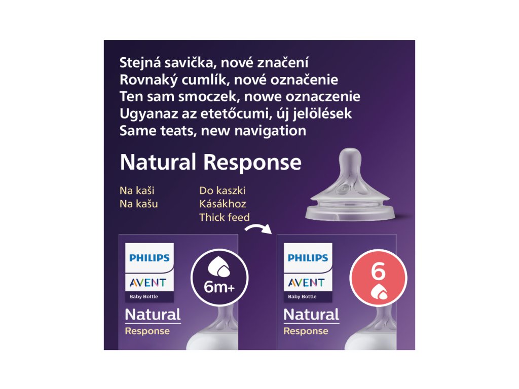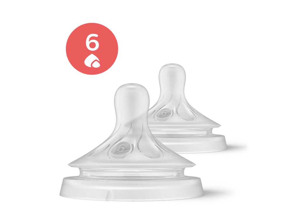 Nový cumlík pre dojčenské fľaše Natural Cumlík s prietokom č. 6, 6m, 2 ks Podporuje prirodzený rytmus pitia dieťaťa Cumlík, ktorý funguje podobne ako prsník Cumlík Natural Response uvoľňuje mlieko len vtedy, keď dieťa aktívne pije. To umožňuje dieťaťu piť, prehĺtať a dýchať v prirodzenom rytme, podobne ako z prsníka. Vďaka tomu je možné ľahko kombinovať dojčenie s kŕmením z fľaše. Jednoduchá kombinácia dojčenia a kŕmenia z fľaše - Prirodzené prisatie vďaka cumlíku v tvare prsníka - Cumlík uvoľňuje mlieko, keď dieťa aktívne pije. Ďalšie výhody: - Vyberte pre vaše dieťa cumlík so správnym prietokom - Dizajn cumlíka zabraňuje kvapkaniu, rozlievaniu mlieka a jeho plytvaniu - Cumlíky a fľaše Natural Response neobsahujú BPA - Buďte trpezliví a nechajte dieťa, aby si zvyklo - Vzduch nepreniká do bruška dieťaťa - Navrhnuté na zníženie rizika koliky a bolestí bruška Cumlík Natural Response Cumlík Natural Response funguje v súlade s prirodzeným rytmom kŕmenia dieťaťa, takže môžete ľahko kombinovať dojčenie a kŕmenie z fľaše. Má jedinečný otvor, ktorý uvoľňuje mlieko len keď dieťa aktívne pije. Takže, keď si dieťa urobí prestávku na prehltnutie a nadýchnutie, pozastaví sa aj tok mlieka. Prirodzené prisatie Široký, mäkký a pružný cumlík je navrhnutý tak, aby napodobnil tvar a pocit z prsníka a pomohol dieťaťu pohodlne sa prisať a kŕmiť. Antikolikový ventil Antikolikový ventil je navrhnutý tak, aby udržiaval vzduch mimo bruška vášho bábätka, a tým pomáhal znížiť riziko koliky a nepohodlia. Cumlík bez kvapkania Otvor cumlíka je navrhnutý tak, aby uvoľňoval mlieko len vtedy, keď sa dieťa kŕmi. Takto si môžete byť istí, že nedôjde k rozliatiu mlieka či už doma, alebo na cestách. Bez obsahu BPA Cumlíky a fľaše Philips Avent Natural sú vyrobené z materiálu bez obsahu BPA. Nájdite si správny prietok cumlíka Každé dieťa sa kŕmi inak a vyvíja sa vlastným tempom. Navrhli sme niekoľko rýchlostí prietoku, aby ste našli tú najlepšiu pre vaše dieťa a mohli ste si fľašu prispôsobiť. Všetky cumlíky Natural Response sú vyrobené z mäkkého silikónu. Buďte trpezliví a nechajte svoje dieťa zvyknúť si Naše nové dojčenské fľaše Natural Response sa líšia od dojčenských fliaš s voľným prietokom. Tak ako pri dojčení, stačí niekoľko pokusov na získanie návyku. To je úplne prirodzené. UPOZORNENIE! - Nepretržité a dlhodobé sanie tekutín spôsobuje zubný kaz. - Vždy skontrolujte teplotu potravy pred podaním. - Pri prvom náznaku poškodenia či opotrebovania produkt odhoďte. - Počas nepouživania udržujte komponenty mimo dosah detí. - Nikdy nespájajte so šnúrami, stužkami, šnúrkami, alebo s voľnými časťami odevu, mohlo by dôjsť k uškrteniu dieťaťa. - Nikdy nepoužívajte cumlík na kŕmenie ako bežný cumlík. - Používajte tento výrobok výlučne pod dohľadom dospelých. Pred prvým použitím výrobok očistite a potom na 5 minút vložte do vriacej vody. Toto zabezpečí hygienickú čistotu. Po každom použití umyte všetky súčasti v teplej mydlovej vode, odstráňte všetky prípadné zvyšky potravín a súčasti dôkladne opláchnite. Ak používate na čistenie špičky cumlíka na kŕmenie kefku, čistite cumlík čo najopatrnejšie, aby nedošlo k jeho poškodeniu. Pred každým použitím vykonajte čistenie na zaistenie riadnej hygieny. Nedovoľte deťom, aby sa hrali s malými dielmi ani aby pri používaní fliaš či pohárov chodili alebo behali. Výrobok nevkladajte do vyhriatej rúry ani do mikrovlnnej rúry. Nepoužívajte agresívne čistiace prostriedky. Neklaďte jednotlivé súčasti na povrchy vyčistené antibakteriálnymi čistiacimi prostriedkami. Sterilizácia a vysoké teploty môžu ovplyvniť vlastnosti plastových obalových materiálov. Pred každým použitím skontrolujte a potiahnite cumlík na kŕmenie všetkými smermi. Pri prvom náznaku poškodenia či opotrebovania produkt odhoďte. Cumlíky na kŕmenie odporúčame vymieňať každé 3 mesiace. Cumlíky na kŕmenie uchovávajte v suchej uzavretej nádobe. Cumlík na kŕmenie nenechávajte na priamom slnečnom svetle ani v blízkosti zdroja tepla, ani ho nenechávajte v dezinfekčnom (sterilizačnom) roztoku dlhšie, než je odporúčané, pretože by mohlo dôjsť k narušeniu jeho povrchu. Adresa dodávateľa: Philips Consumer Lifestyle B.V., Tussendiepen 4, 9206 AD Drachten, The Netherlands, PH.CentralRegulatoryOfficer@philips.comDodatočné parametre