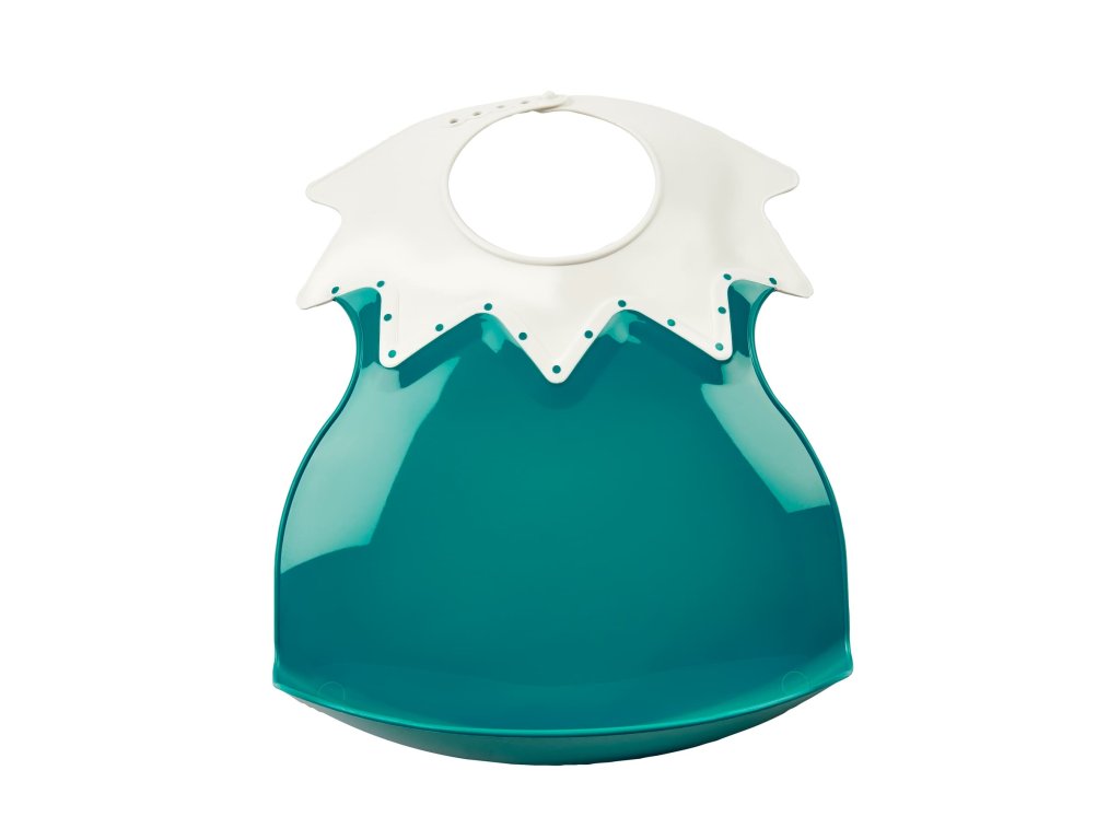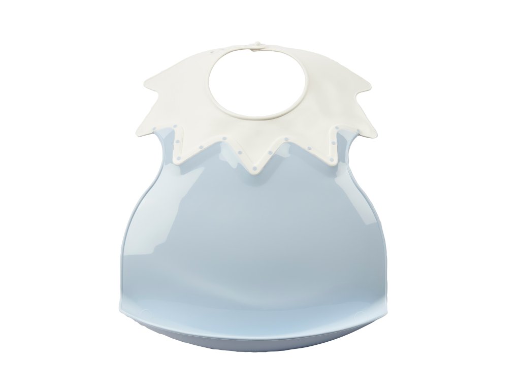 Thermobaby podbradník s golierom z mäkkého plastu je veľmi flexibilný, aby dieťatku zaistil pri stolovaní dokonalý komfort. Korýtko v spodnej časti podbradníka zachytáva zvyšky jedla, preto sa počas kŕmenia dieťatka nemusíte báť zbytočného znečistenia. Podbradník sa ľahko udržiava, po jedle ho stačí umyť mydlovou vodou.