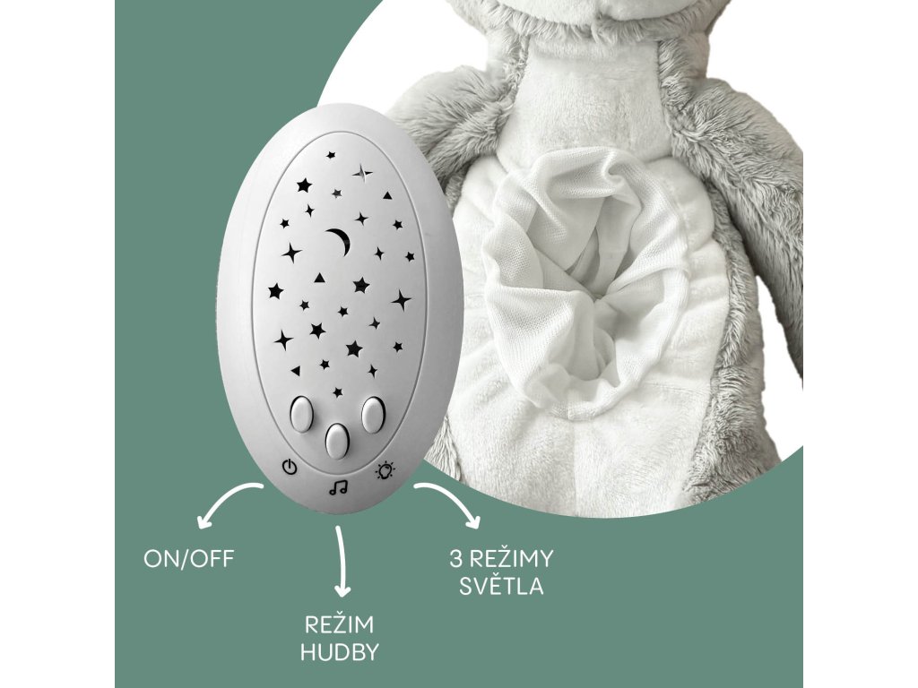 Uspávačik je nielen hebký na dotyk, ale aj bezpečný pre najmenších. Stane sa tak nerozlučným spoločníkom nielen pri večernom uspávaní, ale aj počas dňa, keď prinesie pocit blízkosti.