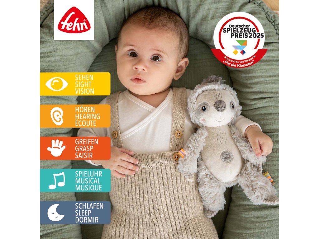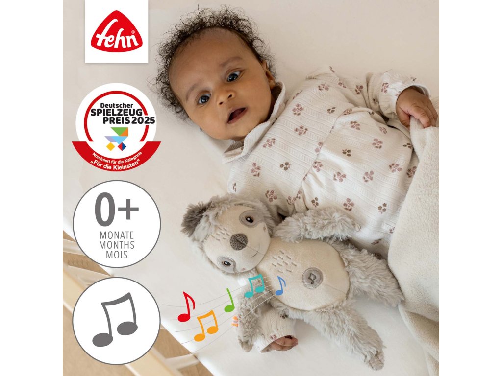 spustí príjemné melódie či prírodné zvuky, ktoré dieťa upokoja a podporia