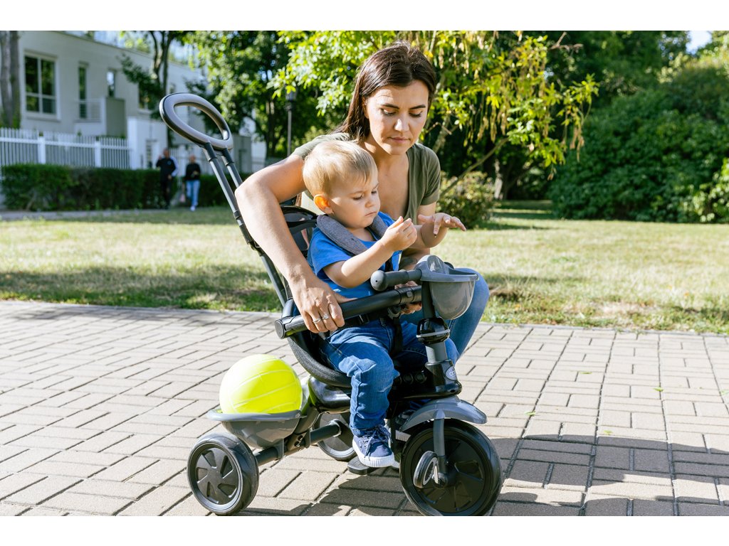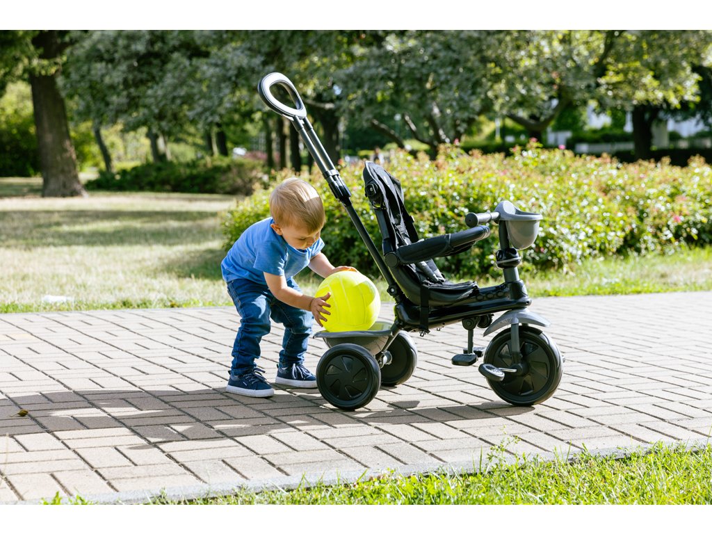 Postupne sa mení zo stabilnej trojkolky s riadidlami pre rodiča na samostatnú trojkolku, ktorá podporuje koordináciu, rovnováhu a nezávislosť dieťaťa.
