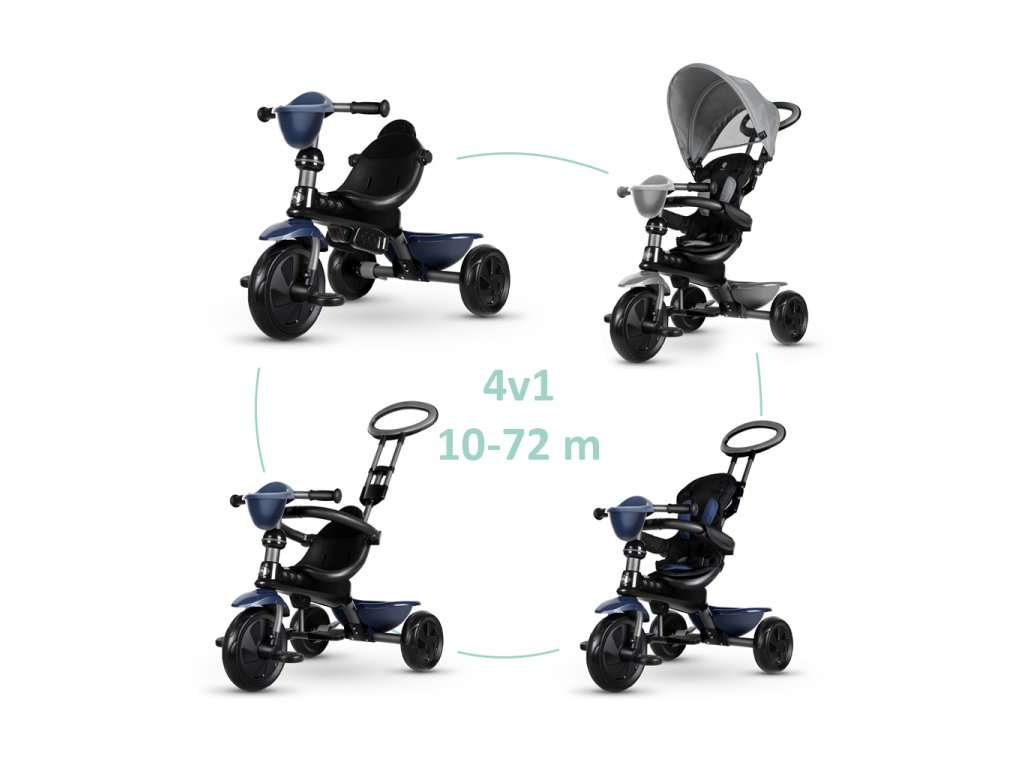 Trojkolka QPlay Cosy 4v1 je navrhnutá tak, aby rásla spolu s vaším dieťaťom – od prvých výletov s pomocou rodiča až po samostatné jazdy.