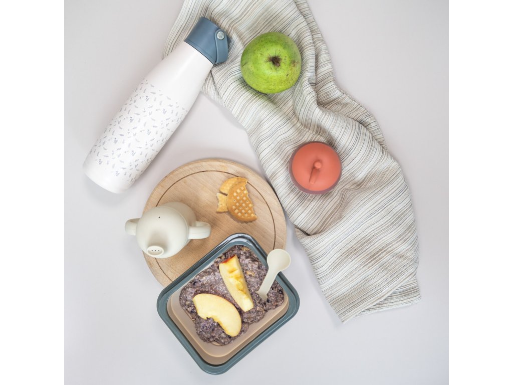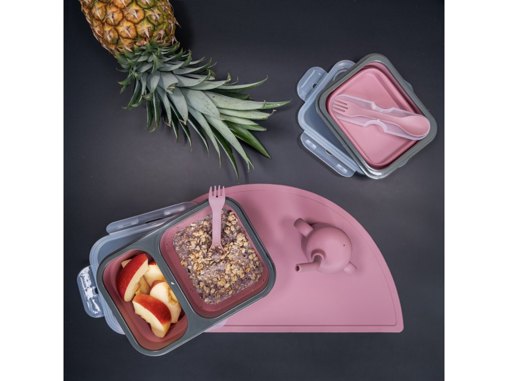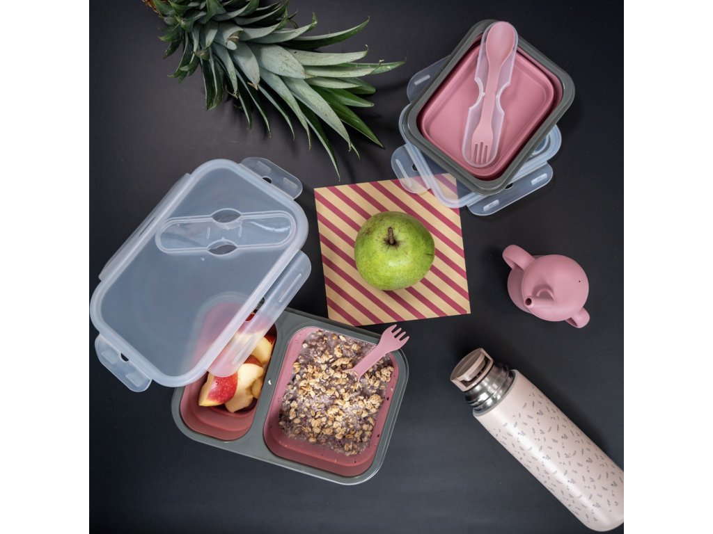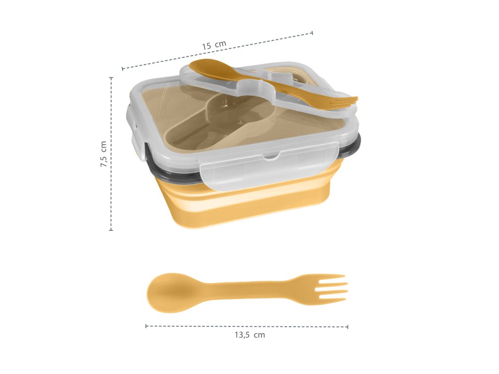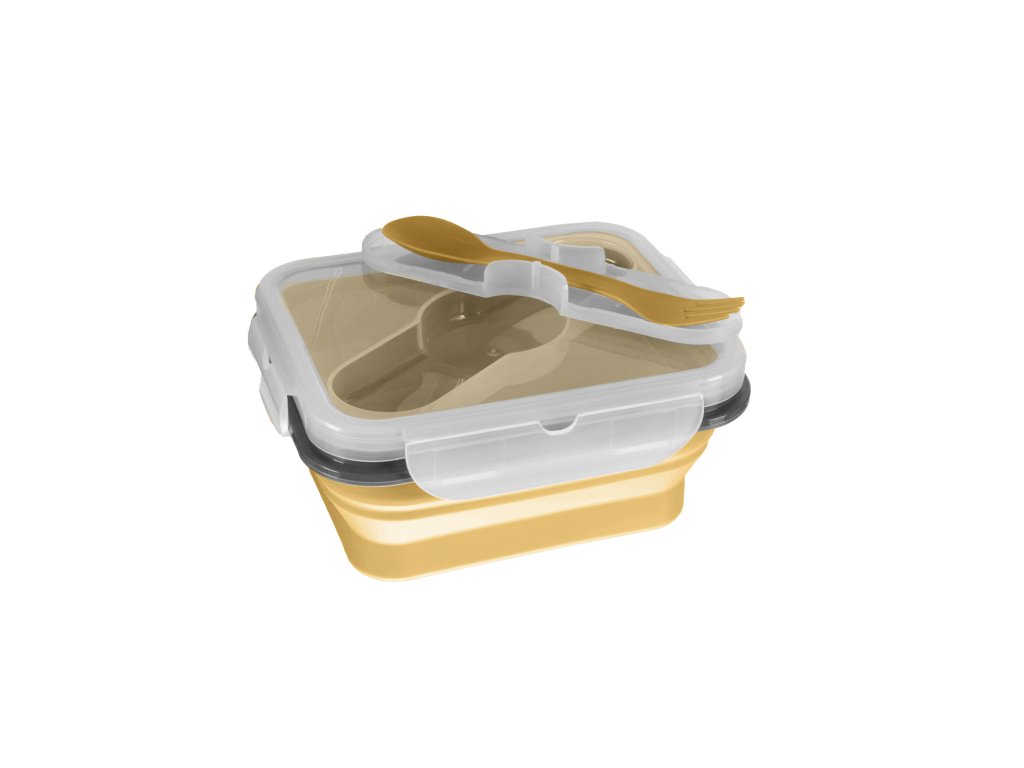Silikónový box na občerstvenie s príborom malý, Mustard Yellow