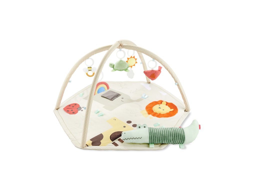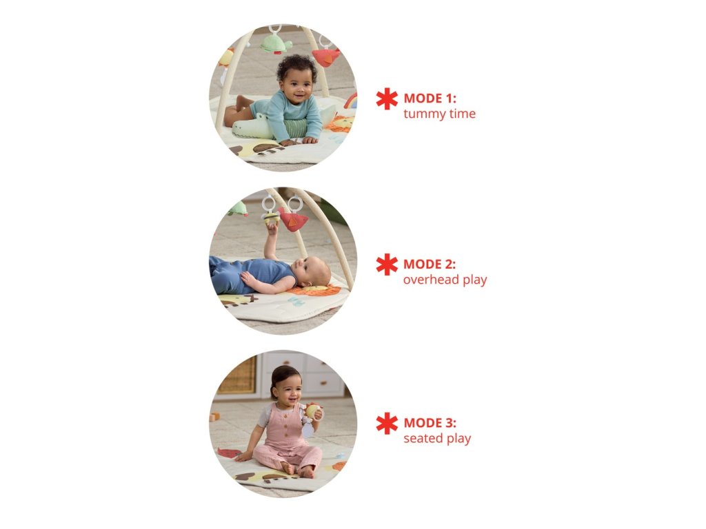 Nechajte objavovať vaše dieťa rozličné tvary a zvuky s dekou na hranie Skip Hop Geometric Wonders. Je plná zábavných a interaktívnych prvkov, ktoré pomáhajú rozvíjať motorické zručnosti a podporujú zvedavosť detí už od narodenia. Hračky, ktoré sú súčasťou sa dajú odnímať z podložky a dieťa sa s nimi môže hrať aj mimo deky. Neutrálna paleta farieb deky jednoducho splynie s akýmkoľvek interiérom. Vlastnosti - 3 možnosti hrania: čas na brušku, hranie na chrbte, hranie v sede - 5 zavesených hračiek pre interaktívnu zábavu: zvoniaca korytnačka so zrkadlom na bruchu, drevená včielka s látkovým telom, vtáčik s rolničkou, šuštiaca dúha, pískacie slniečko s hryzačkou v tvare obláčika - hracia podložka má geometrické tvary s roztomilými zvieratkami a prešívaním - vankúšik v tvare krokodíla pre čas strávený na brušku s textúrovaným telom - vhodné pre deti od 0 mesiacov - ideálny darček pre každé dieťa, ktoré začína objavovať svet okolo seba - neobsahuje BPA - certifikát FSC - možno prať v práčke - rozmery: 86,4 x 96,5 x 48,3 cm Varovanie: Pred použitím odstráňte a správne zlikvidujte všetky obalové materiály. Nenechajte deti hrať sa s obalovými materiálmi. Vždy používajte pod dohľadom dospelej osoby. Používajte iba na podlahe, nikdy nepoužívajte v postieľke alebo ohrádke. Dodávateľ: ags 92, s.r.o., Drahobejlova 2515/18, 190 00 Praha Česká republika info@ags92.com.Dodatočné parametre