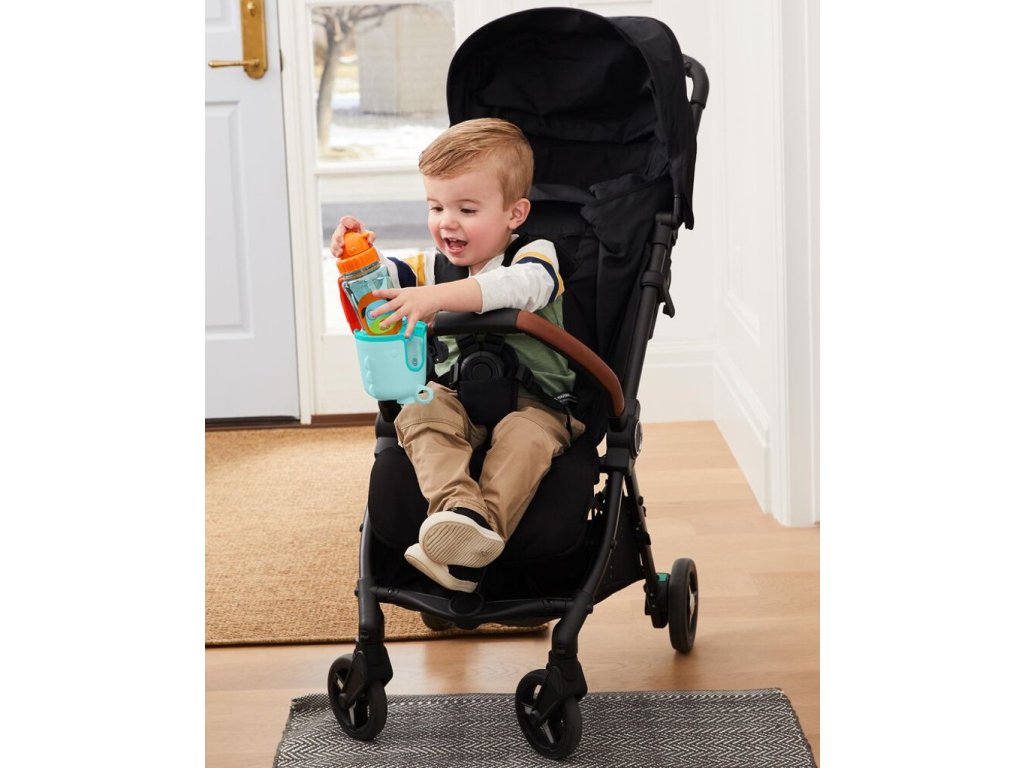 Vďaka tomuto univerzálnemu držiaku budete mať pohár, fľašu so slamkou či kávu vždy na dosah. Jeho jedinečný dizajn je vhodný aj pre hrnčeky s držadlami. Držiak sa jednoducho pripevní na väčšinu kočíkov, bicyklov alebo dokonca nákupných vozíkov. Bonusom sú dva háčiky na hračky, ktoré počas prechádzky zabavia vaše dieťatko.