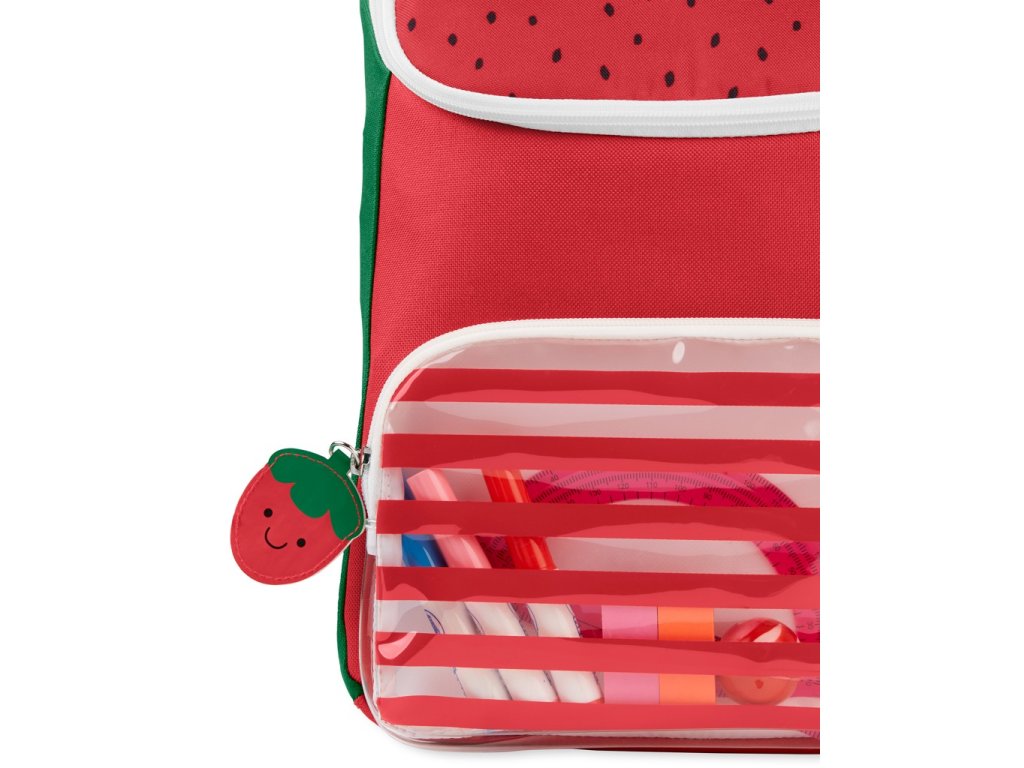 Priehľadné predné vrecko s veselou potlačou pre drobnosti.