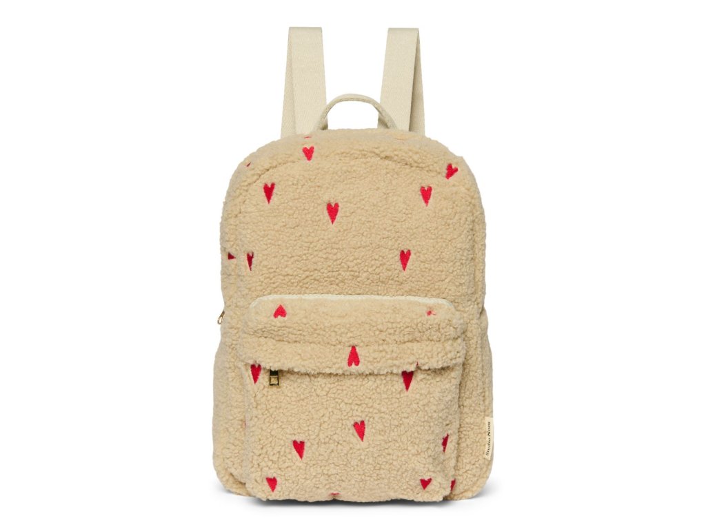 STUDIO NOOS - Teddy Midi BACKPACK - batôžtek s predným vreckom | Ecru Hearts