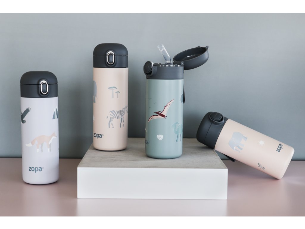 Osviežujúca šťava alebo teplý čaj? Dizajnová termoska 400 ml s veselými motívmi a vzduchotesným uzáverom udrží nápoje horúce 12 h, chladné 24 h. Ideálne na dobrodružstvo.