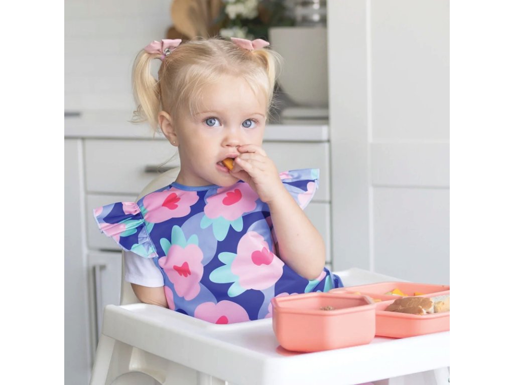 Tiny Twinkle Zásterka s podbradníkom a volánikmi, S - Blue Floral