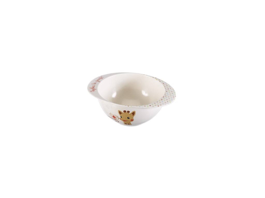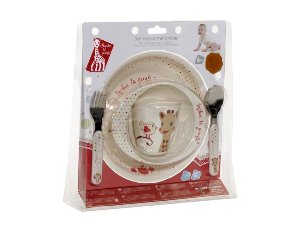 Jedálenská súprava žirafa Sophie s motívom vtáčika Kiwi (ružová)