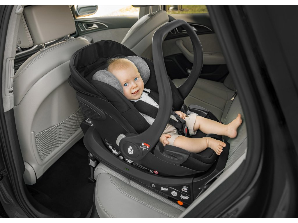 XS i-Size je možné do auta inštalovať pomocou bezpečnostného pásu auto alebo na isofixovú základňu X1 Plus i-Size. Vďaka ergonomickej rukoväti sa autosedačka ľahko prenáša.
