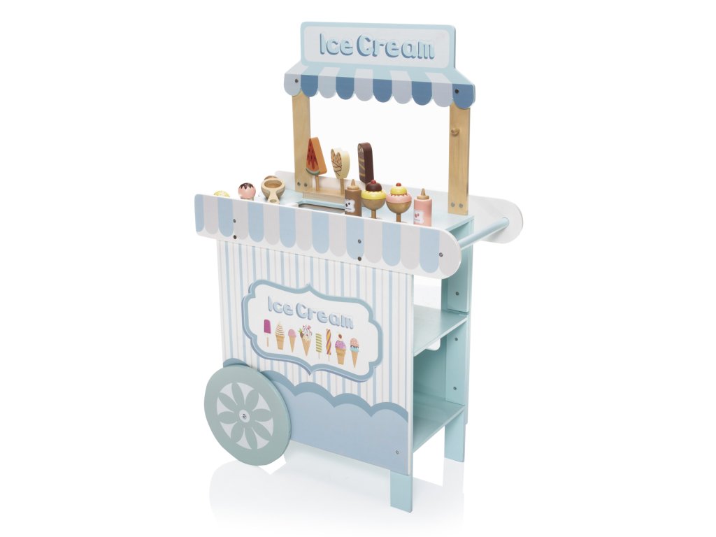 Teraz si vaše deti môžu vychutnať lahodnú zmrzlinu nielen v lete. Táto prepracovaná a farebná súprava je navrhnutá tak, aby rozvíjala kreativitu, predstavivosť a podporovala hravé hranie rolí. Krásne ladený vozík pripomínajúci zmrzlináreň je pripravený vydať sa na cestu do sveta detskej fantázie. Deti si zamilujú jeho autentický dizajn a jednoduché ovládanie. Deti si môžu užiť hranie sa na skutočného zmrzlinára s nástrojom na krájanie, ktorý im umožní vytvoriť dokonalé a lahodné porcie obľúbenej zmrzliny. Súprava obsahuje aj mraziaci box, ktorý slúži ako hračka a pomáha deťom predstierať, že ich zmrzlina je vždy čerstvá a chladná.