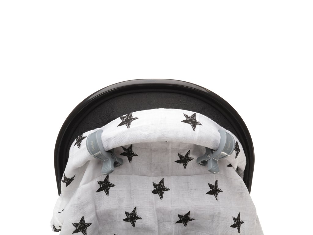 Praktický klip na kočík alebo autosedačku, pomocou ktorého ľahko, rýchlo a bezpečne zatiahnuť plienku či osušku chrániaci dieťa pred slniečkom alebo poveternostnými vplyvmi. Pomocou štipca môžete pripevniť aj cumlíky či hračky a zabránite tak ich strate. Kolíček je vyrobený z veľmi kvalitného plastu, ktorý neobsahuje BPA.