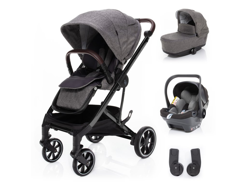 Súprava obsahuje podvozok so športovým sedadlom, hlboké sedadlo, autosedačku a adaptéry.