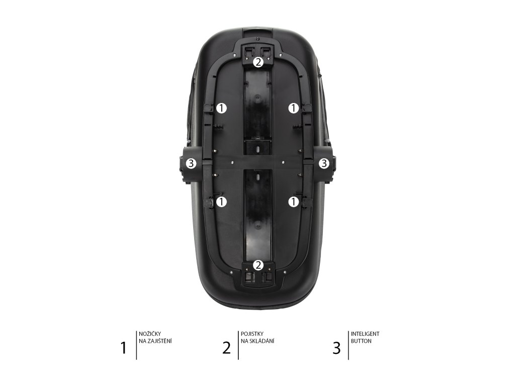 Inteligentné tlačidlá na jednoduché vybratie športovej sedačky a prenosnej tašky z podvozku