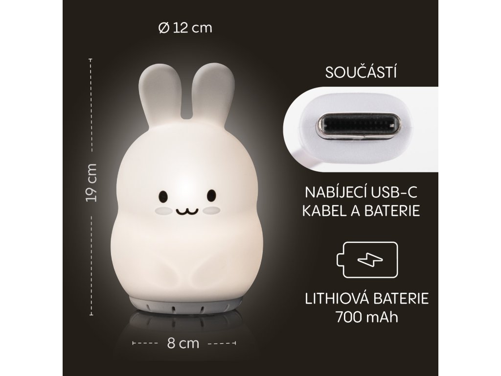 Štýlová a praktická nočná lampička v tvare roztomilého zvieratka je skvelým doplnkom do každej detskej izby. Spája jemné osvetlenie, zábavné funkcie a moderné technológie, ktoré ocenia deti aj rodičia. Je ideálna aj na umiestnenie priamo do postieľky, kde svojim tlmeným svetlom vytvára príjemnú atmosféru pre ničím nerušený spánok. Lampička je vyrobená z mimoriadne jemného silikónu, ktorý je príjemný na dotyk, odolný a bezpečný aj pre najmenšie deti. Silikónovú časť možno navyše jednoducho umyť v umývačke riadu, čo zaručuje vždy hygienické použitie.