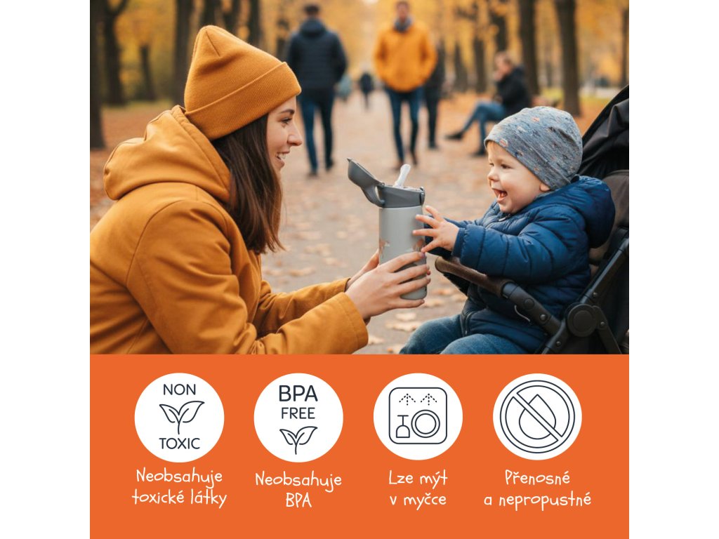 Jednoduché pitie pre deti: Mäkký silikónový náustok a slamka podporujú samostatnosť pri pití.